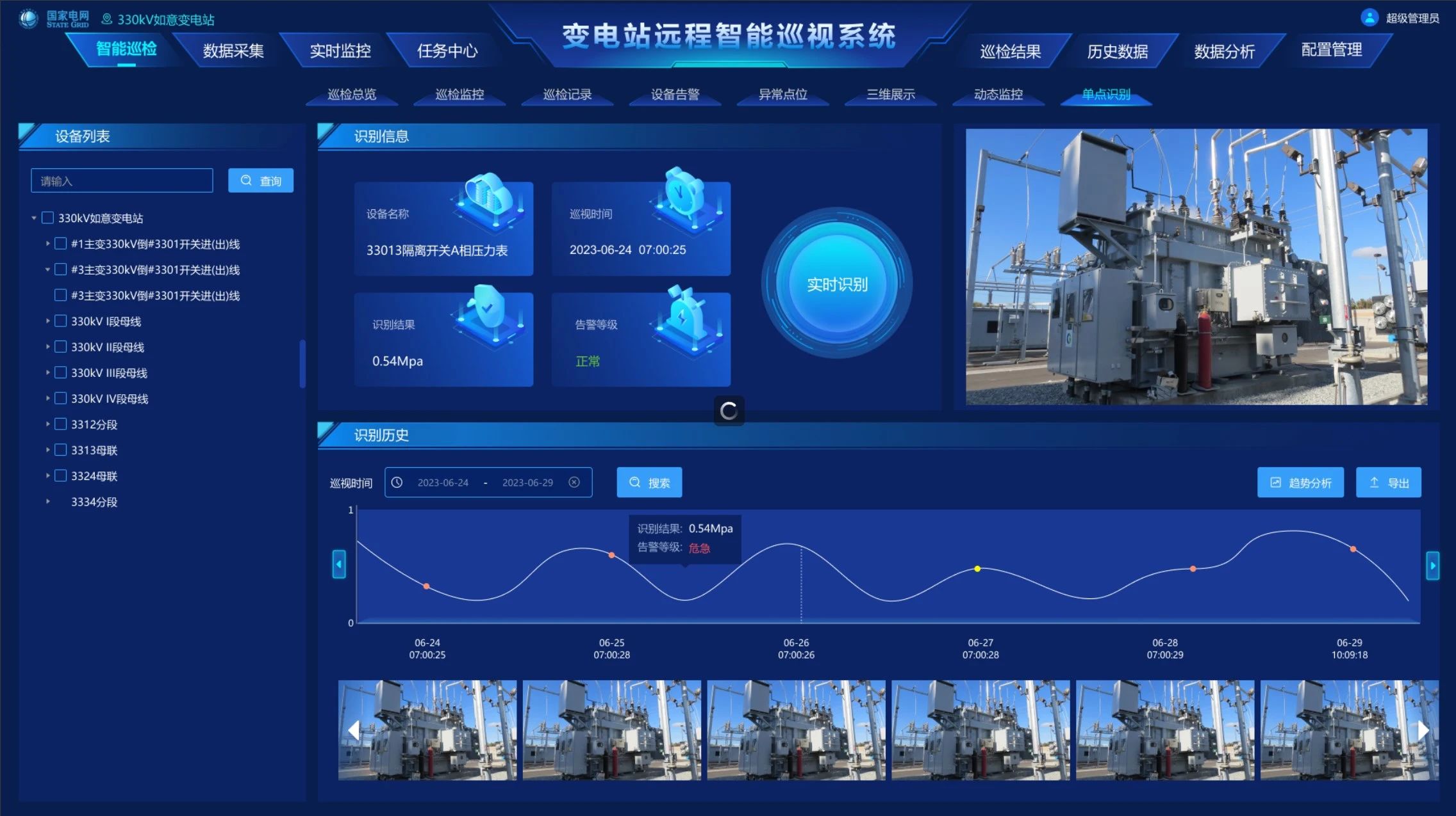 經過中國電科院和國網電科院的嚴格檢測,變電站智能巡視系統已獲得電科院檢測報告,確保了系統的穩定性和可靠性,目前該系統已在18個變電站部署。