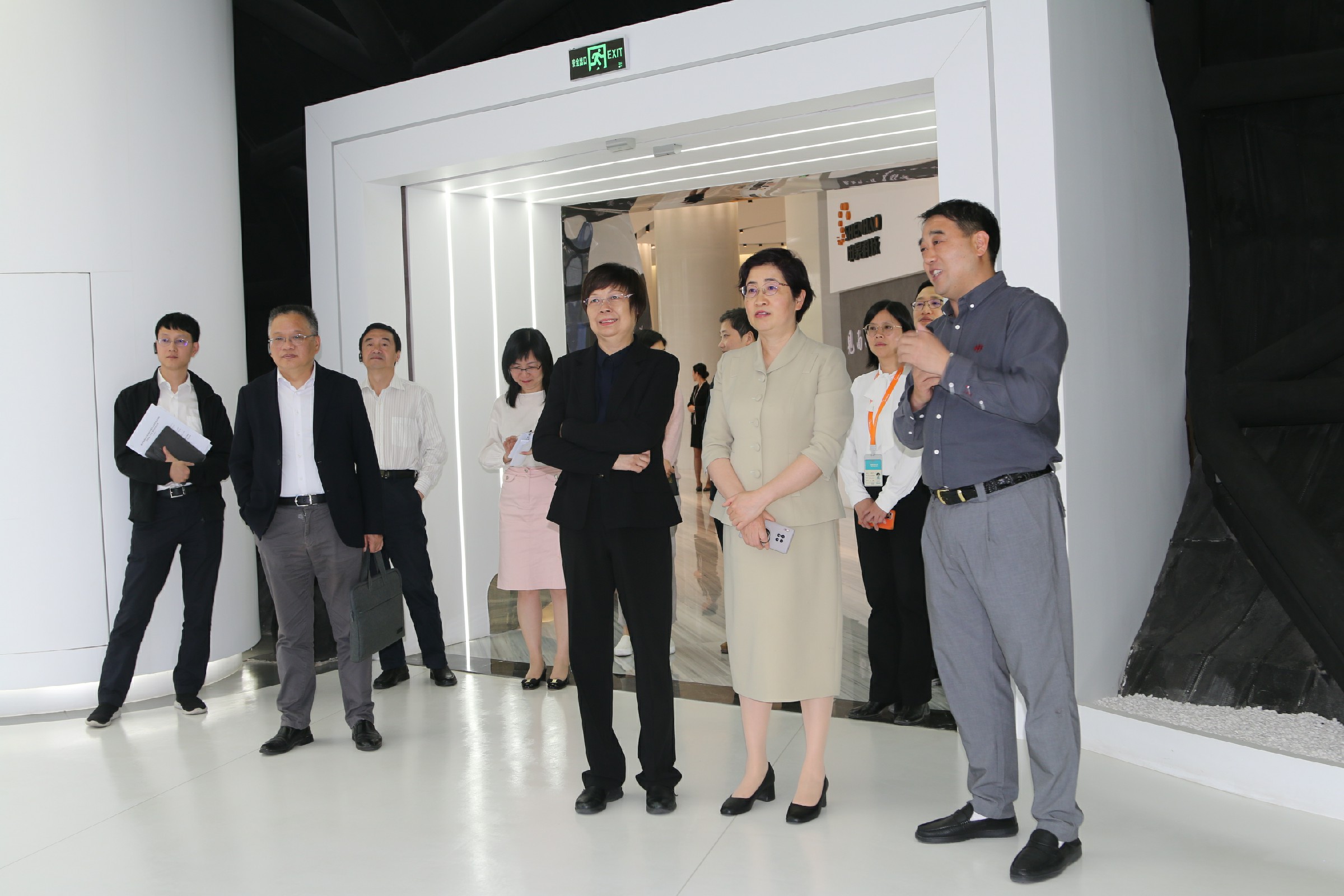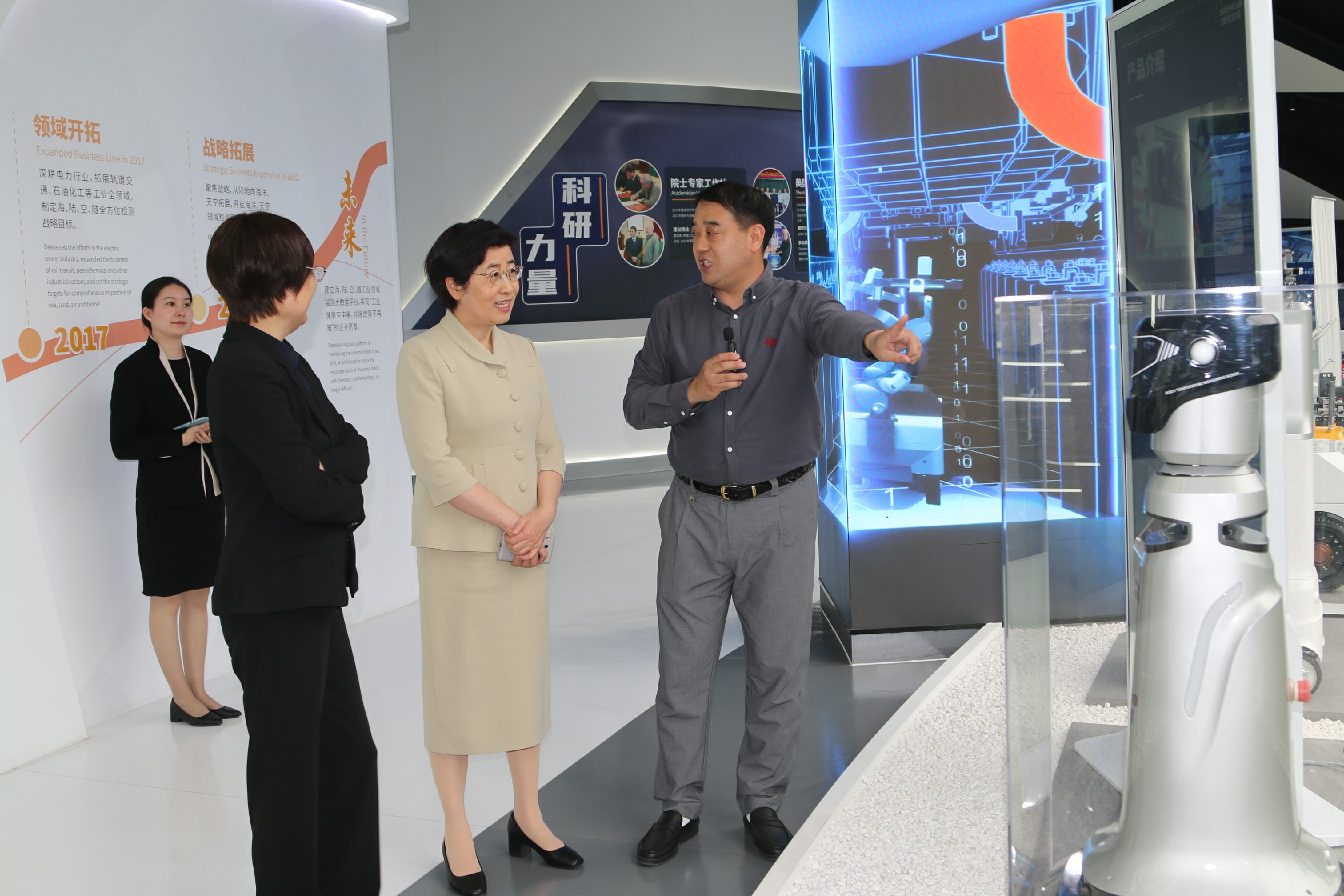 陳常務(wù)副市長一行參觀了電力館、軌道交通、石油石化館、未來館、數(shù)據(jù)中心,考察了申昊科技的前沿技術(shù)、創(chuàng)新成果及人工智能產(chǎn)品應(yīng)用情況。