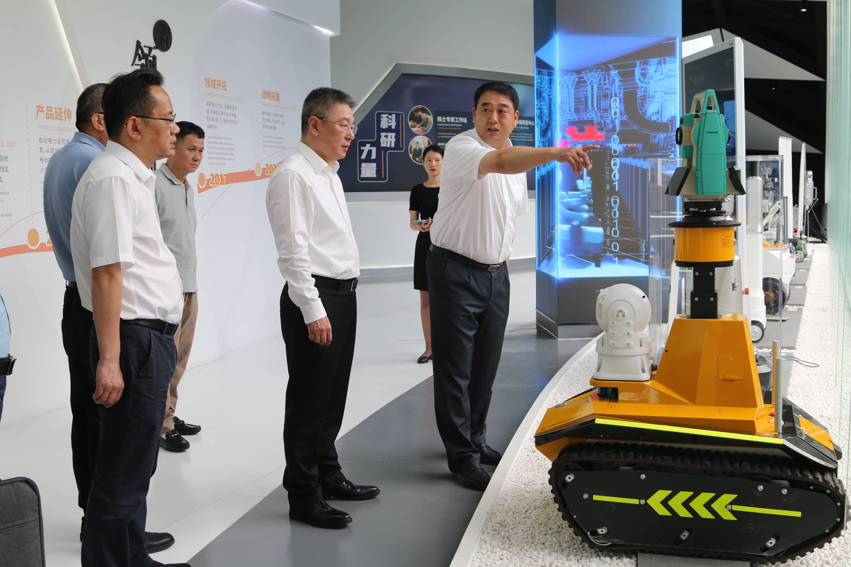 陳如申董事長陪同浙江省生態環境廳領導一行參觀了申昊科技的電力館、軌道交通館、石油石化館、未來館、數據中心、智慧站房等多樣化展廳。他詳細介紹了公司目前最新的研發成果、前沿技術、企業發展經營、戰略布局及行業應用情況。隨后雙方進行深入交流。