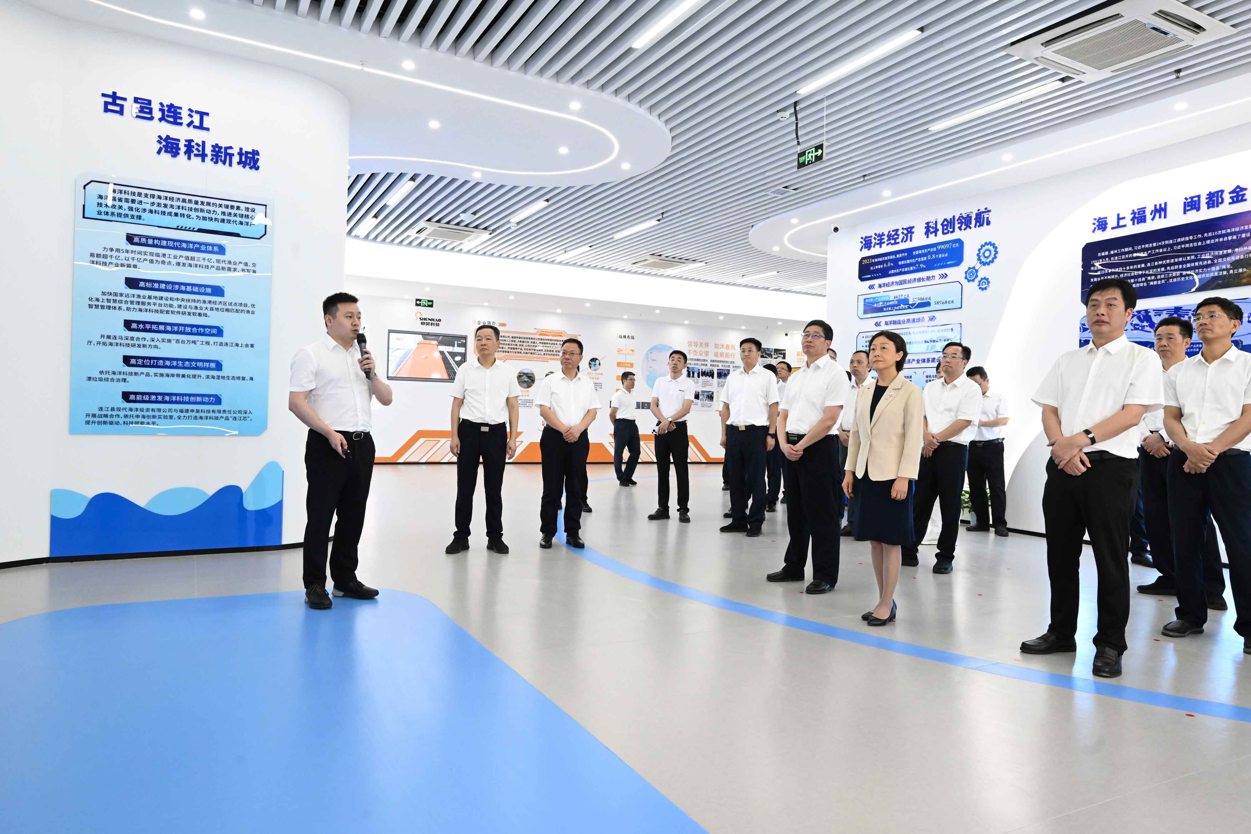 7月3日,福建省委常委、福州市委書記郭寧寧率領市四套班子和福州新區有關領導一行蒞臨連江縣開展2024年全市重點項目建設“亮曬比學”活動。在此次活動中,申海創新實驗室作為重點考察項目之一,主要考察智慧海洋核心技術與產品研發、海洋新質生產力培育等情況。申昊科技CTO、福建申昊公司董事長、申海創新實驗室負責人吳海騰向考察團詳細匯報實驗室發展情況與成果。