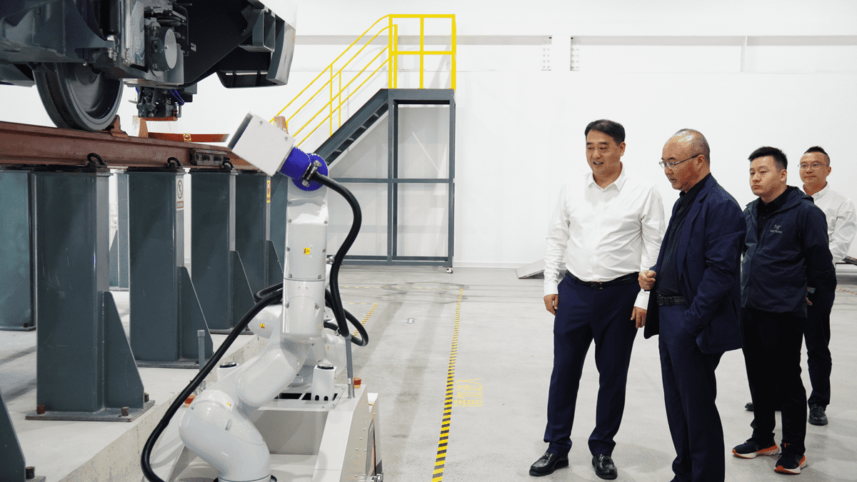 石繼東一行參觀了申昊科技產品試驗基地,實地考察、了解申昊科技智能運維機器人重點實驗室、軌道交通智能運維技術與裝備重點企業研究院等科研平臺情況,重點聽取申昊科技就智能機器人及智能監測控制設備產品在軌道交通領域的應用成果介紹。